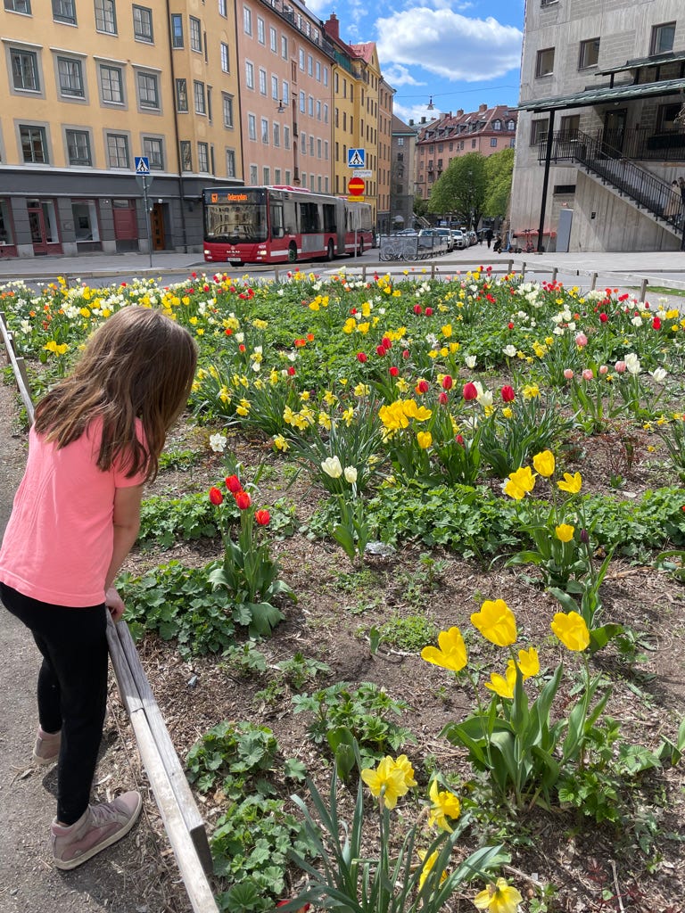 This post is probably over due by a couple of weeks. Nevertheless, Spring has arrived in Stockholm. And it is fabulous! We were told that because of the really cold winters, spring has a tendency to pop out surprisingly quickly. Sure enough, over the course of what felt like only a couple weeks, everything went from dull grey and brown to a profusion of color and brightness. And my allergies will attest to the prolific amount of pollen produced as a result. Here are some random shots of our recent spring goodness: